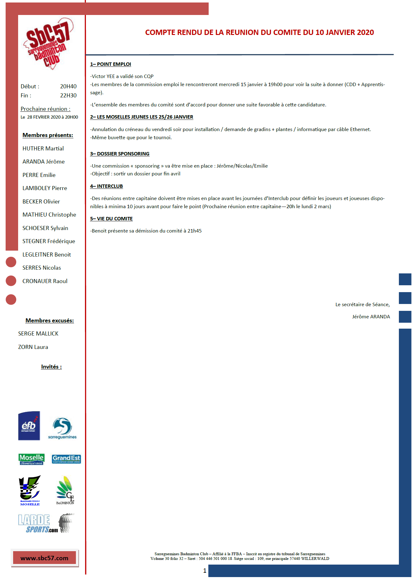 -Réunion du vendredi 28 février 2020 :ICI
