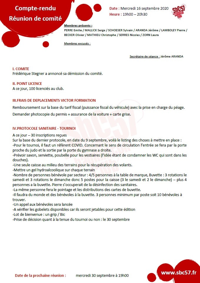 -Réunion du mercredi 16 septembre 2020 : ICI
