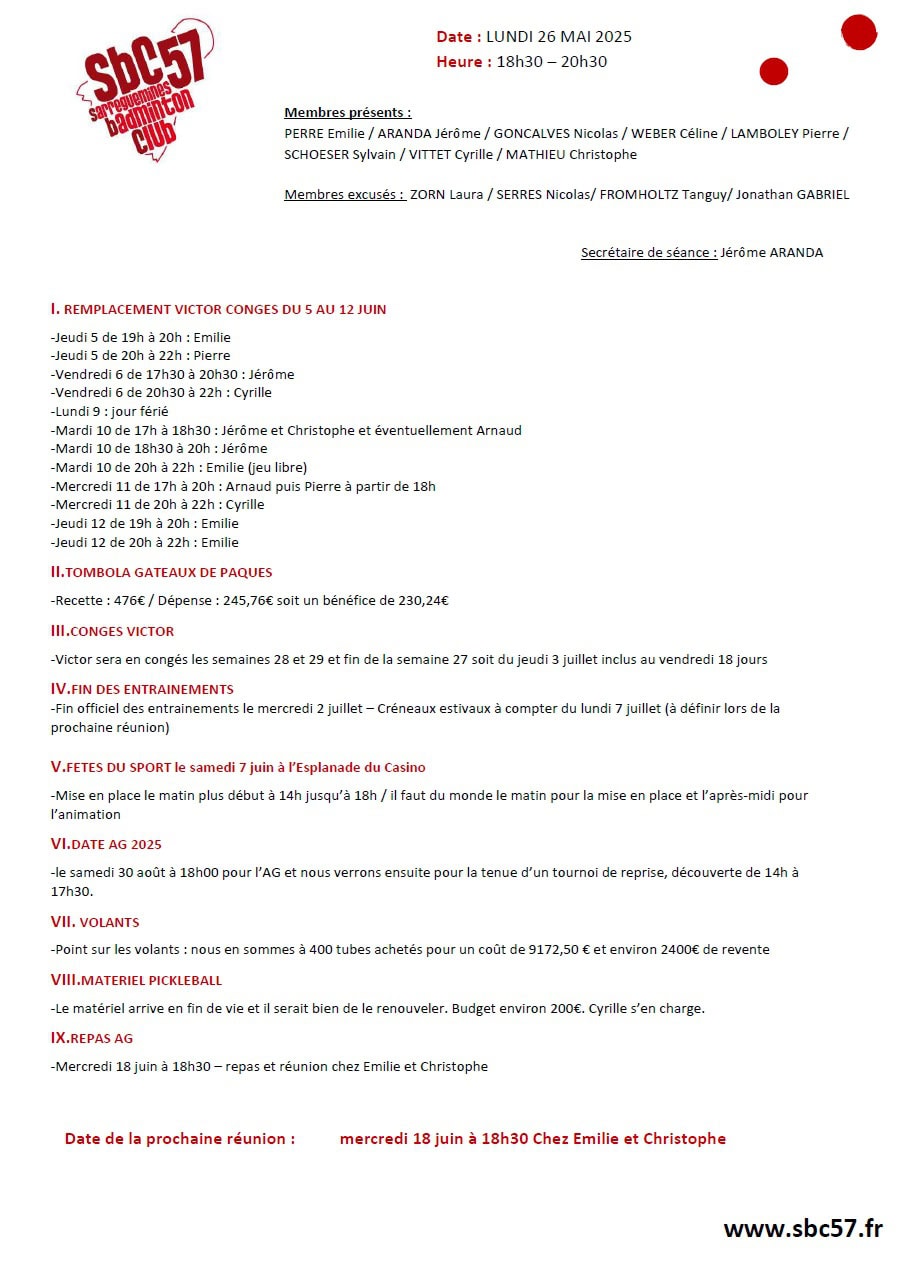 -Réunion du 26 mai 2025 : ICI