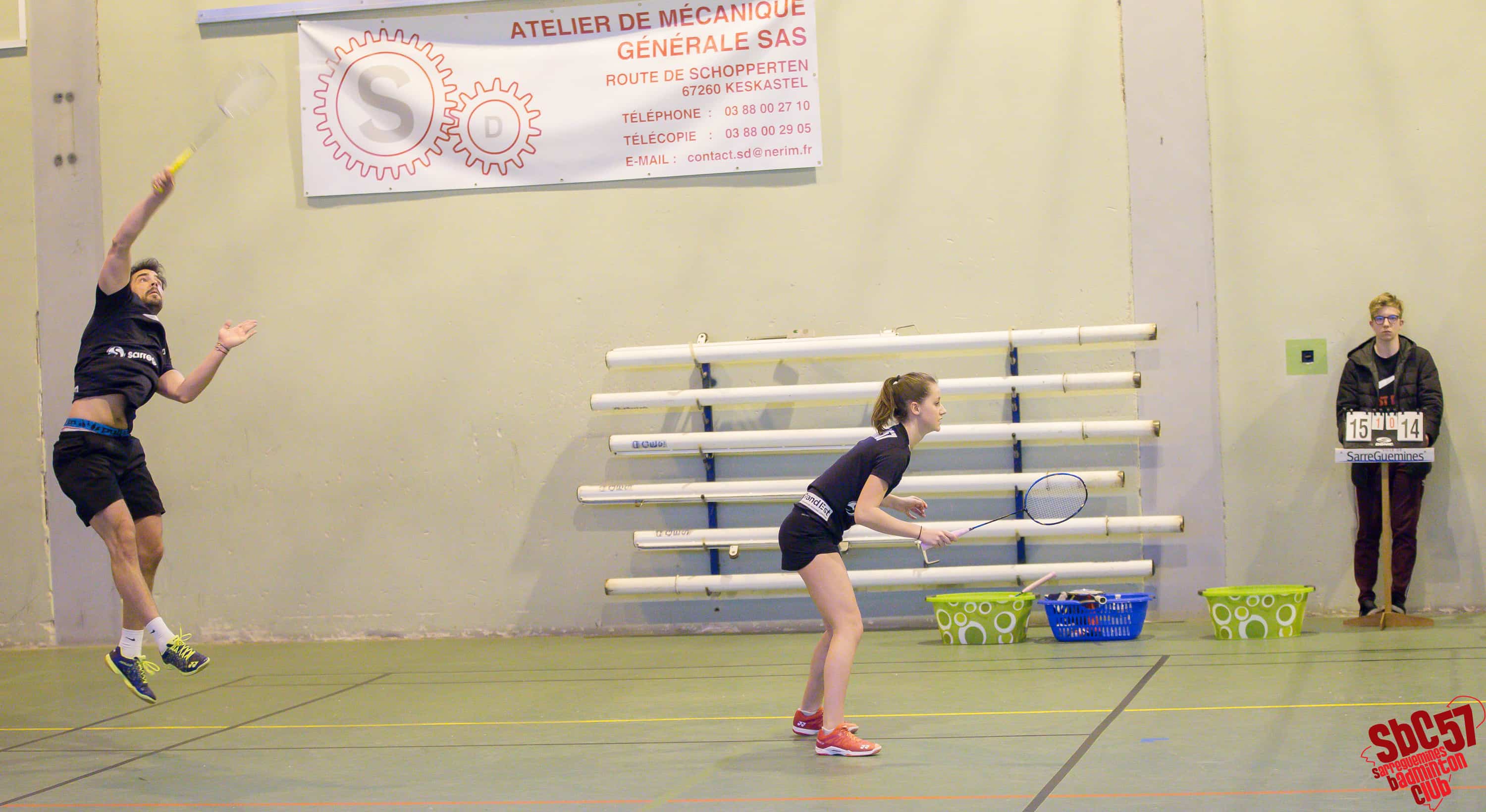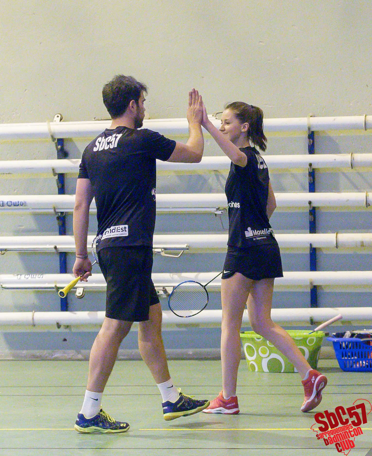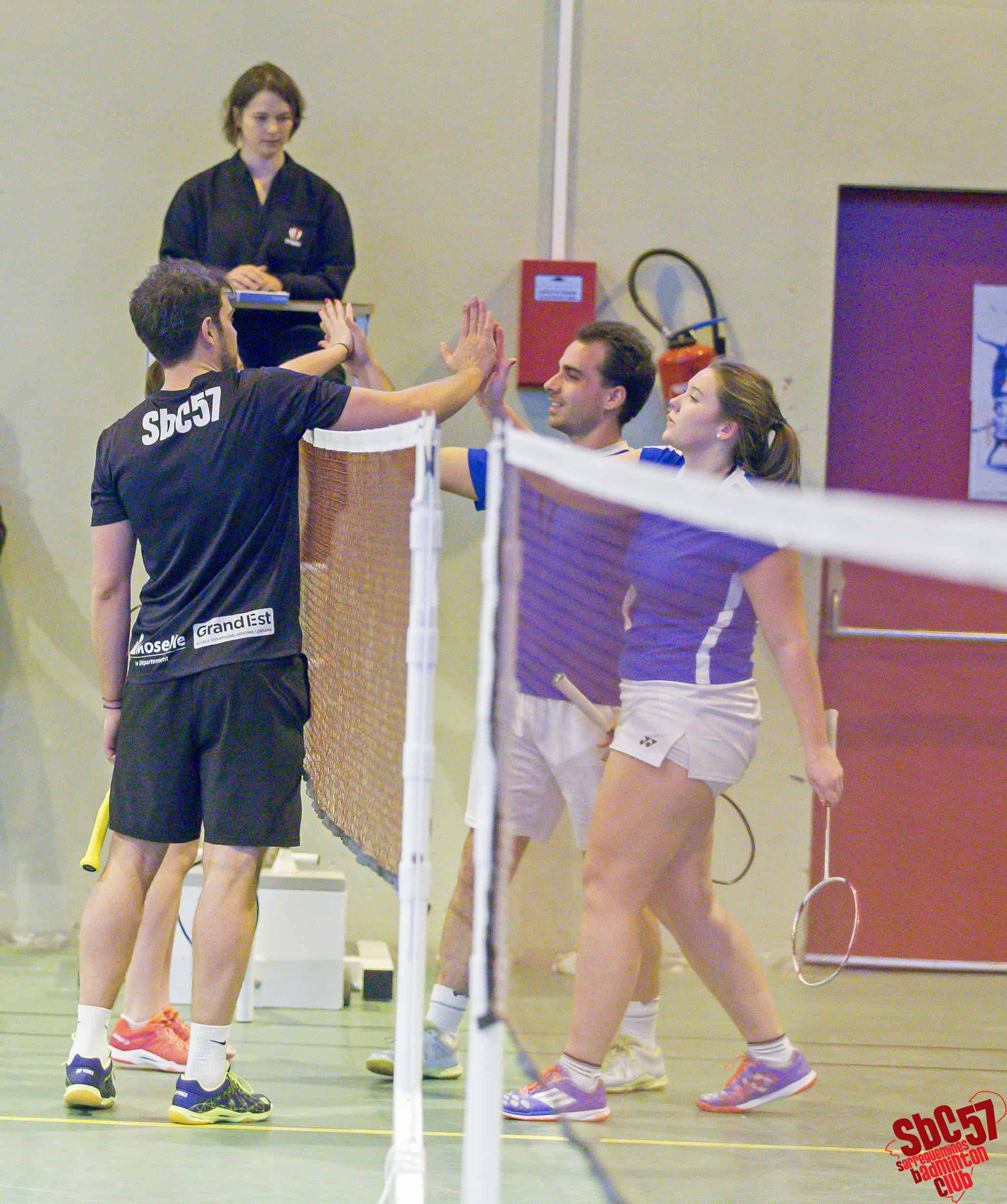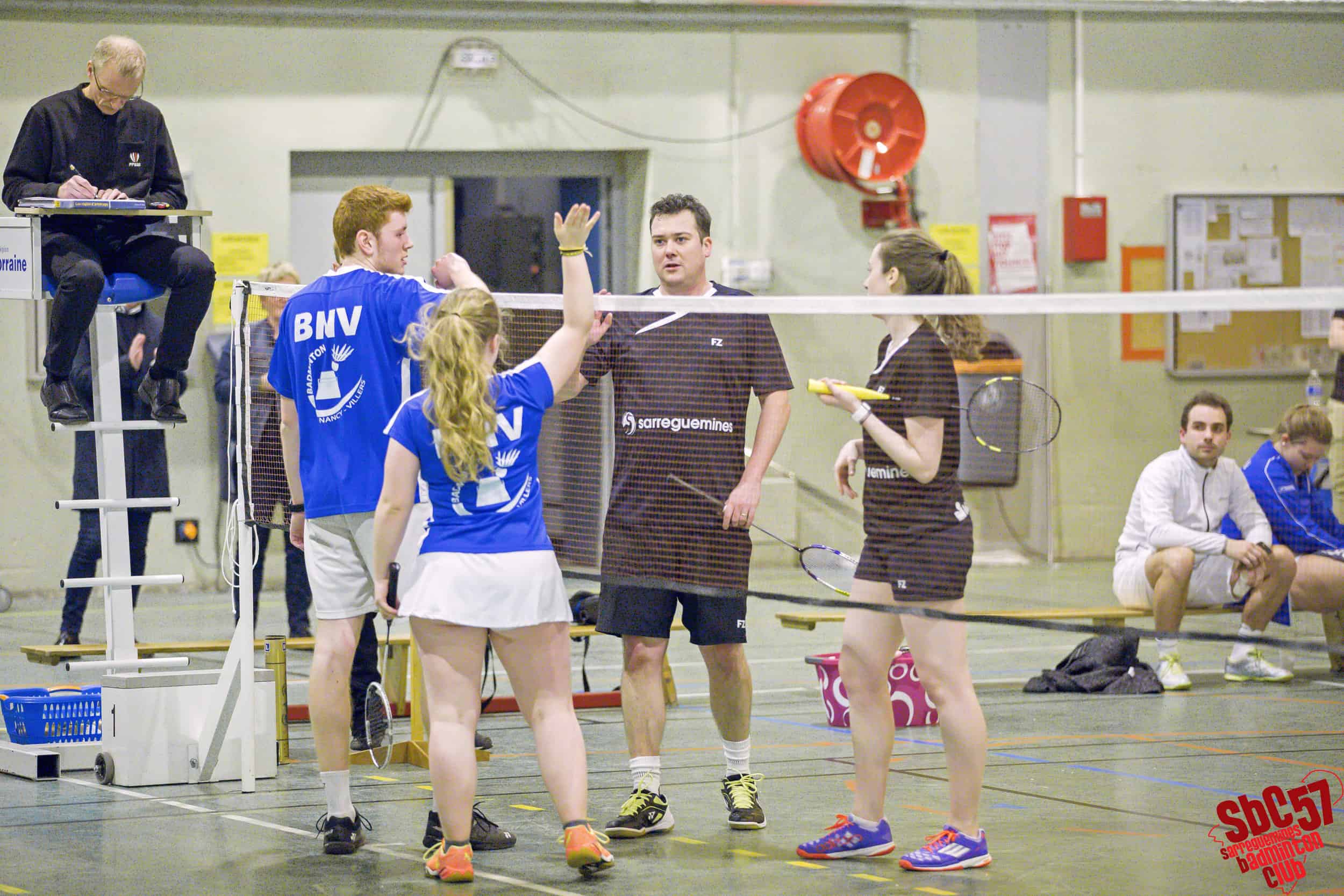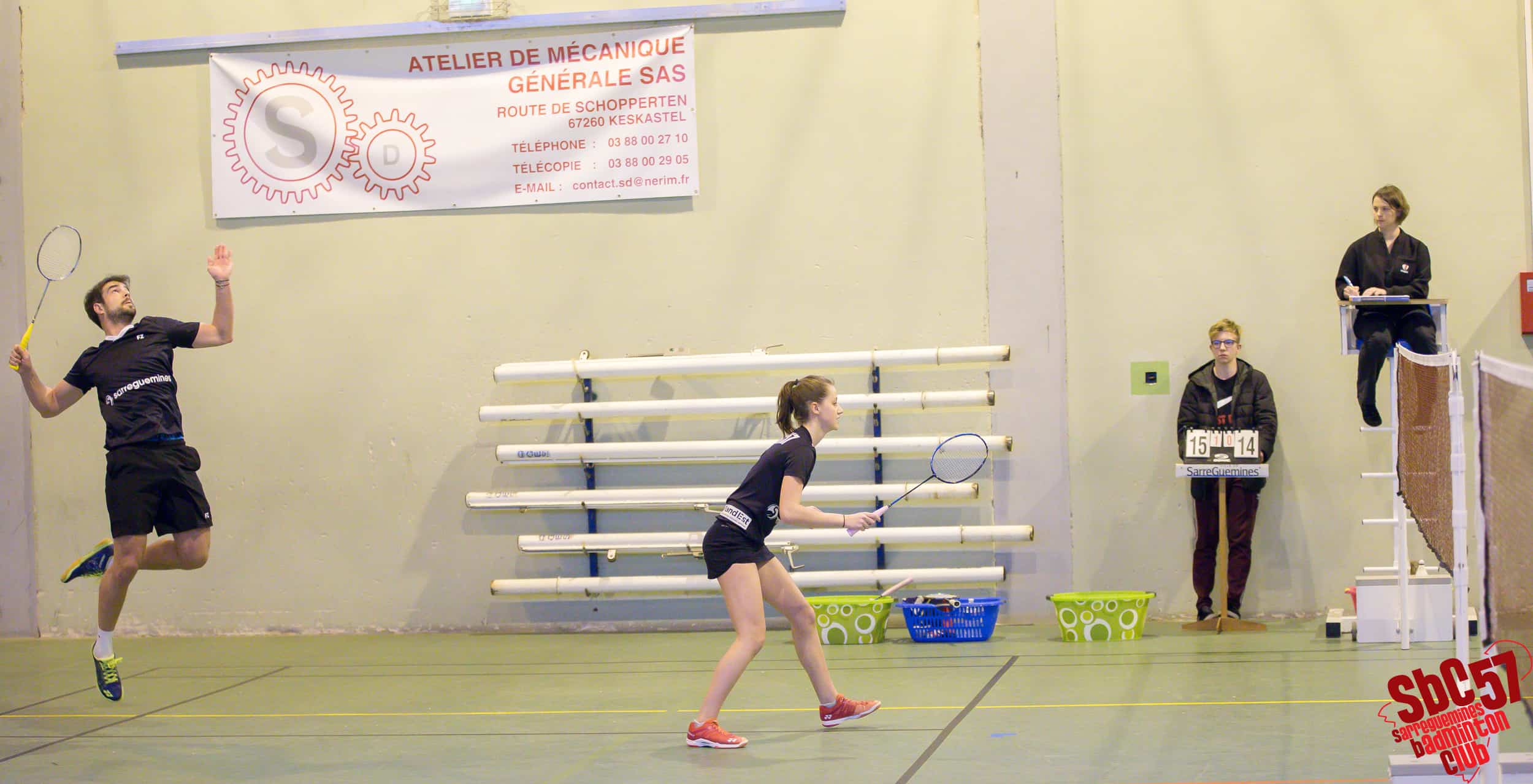 Les Villarois réduisirent le score en s’adjugeant un simple hommes mais le SBC réagit immédiatement en gagnant les simples dames d’Apolline Houver (21/8, 21/12) et d’Alicia Schoeser (21/13, 21/10). Les Meurthe-et-Mosellans répliquèrent avec le gain de l’autre simple hommes mais les Sarregueminois firent basculer la partie en leur faveur en remportant les doubles mixtes de Rémi et Apolline (21/15, 21/18) et de Stéphane Mallick et Mathilde (21/18, 21/12).