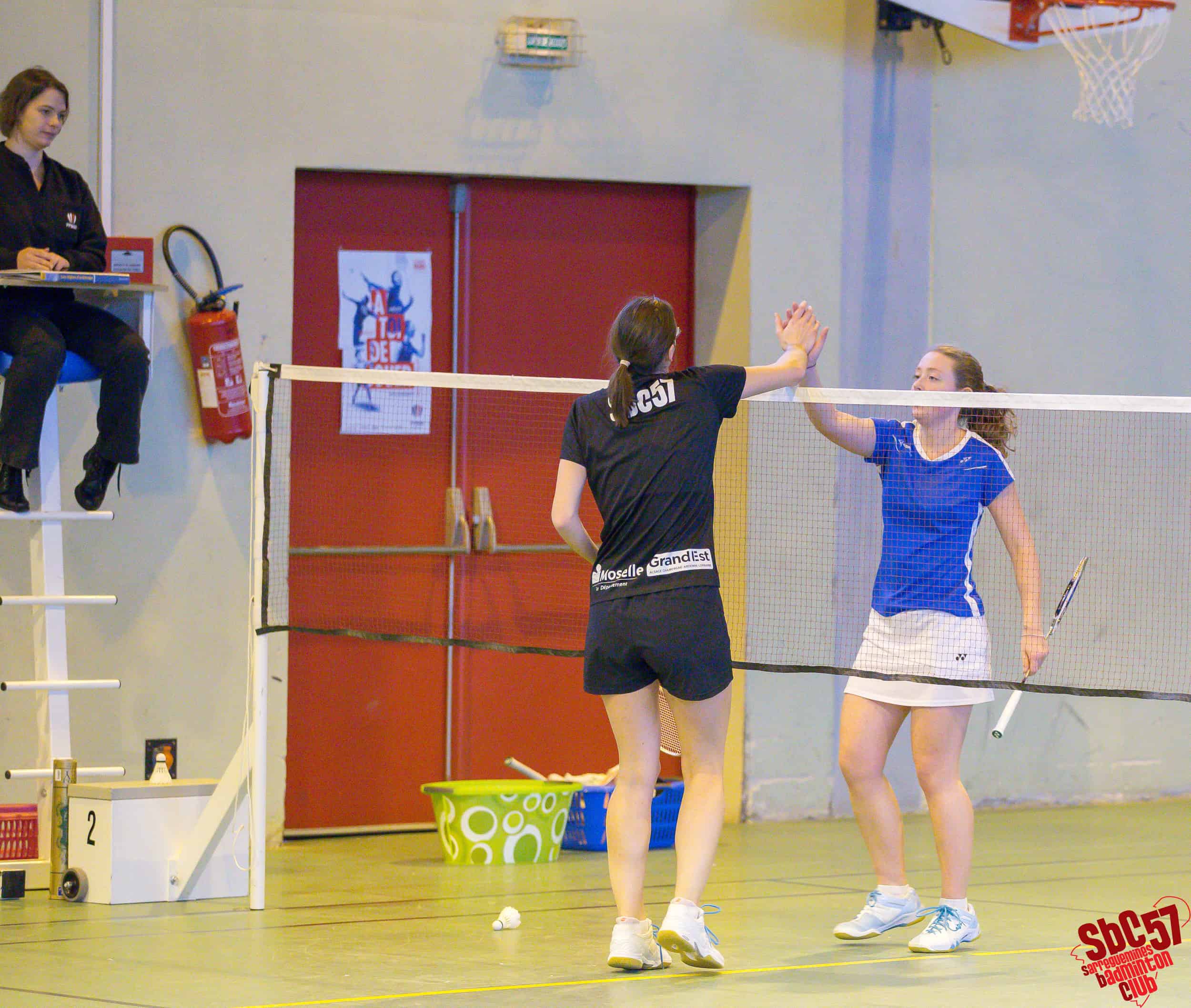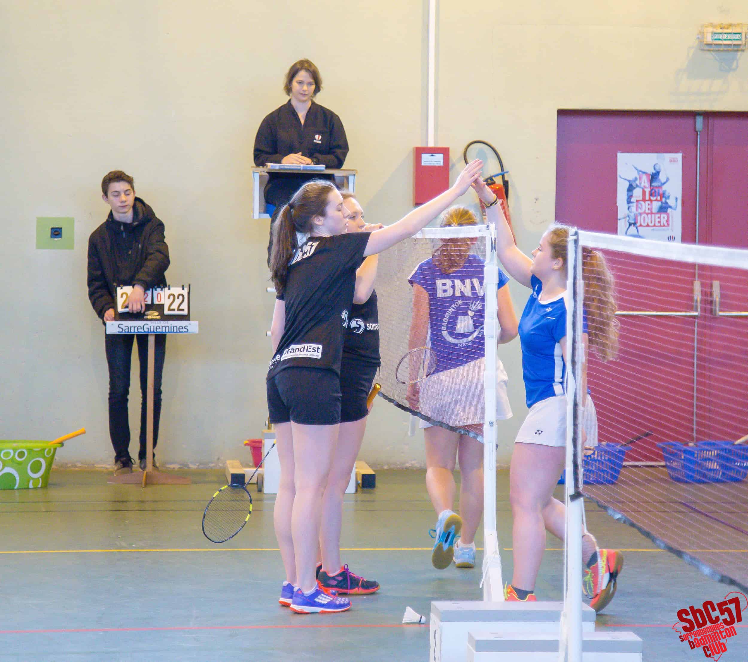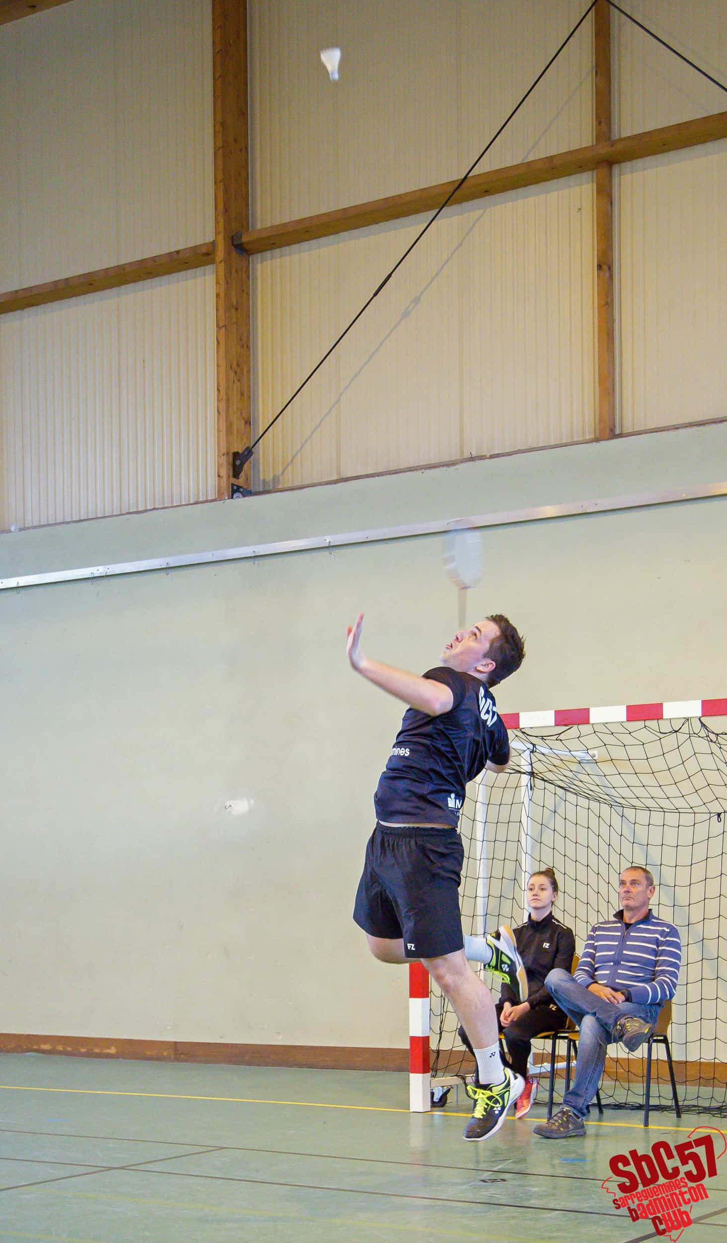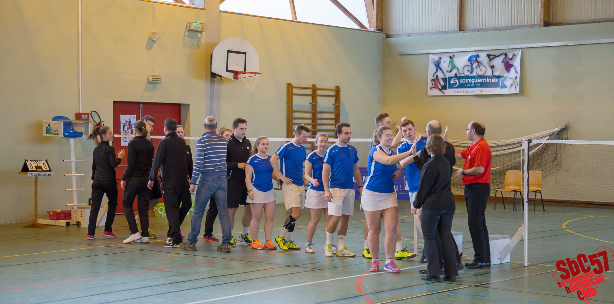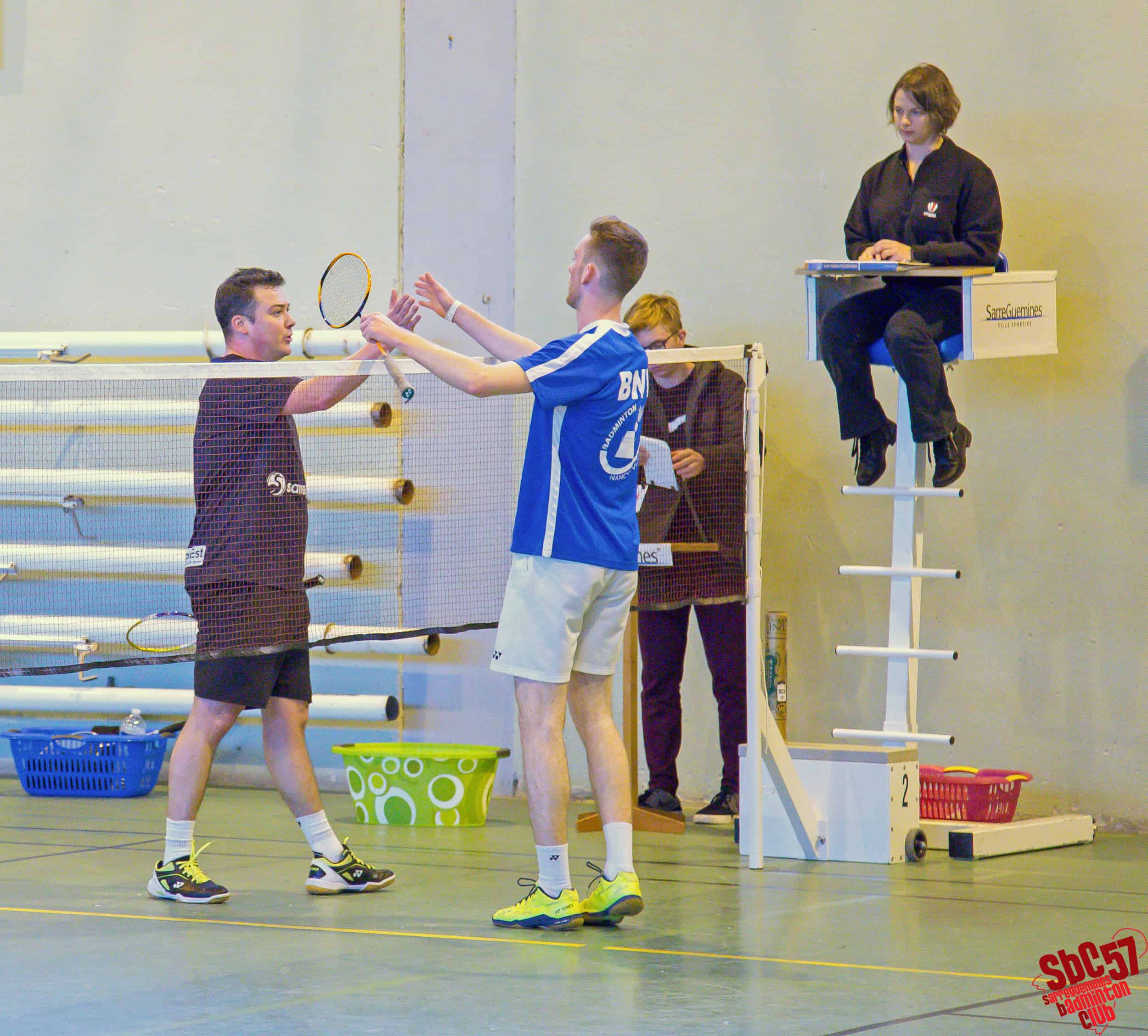 Les Villarois réduisirent le score en s’adjugeant un simple hommes mais le SBC réagit immédiatement en gagnant les simples dames d’Apolline Houver (21/8, 21/12) et d’Alicia Schoeser (21/13, 21/10). Les Meurthe-et-Mosellans répliquèrent avec le gain de l’autre simple hommes mais les Sarregueminois firent basculer la partie en leur faveur en remportant les doubles mixtes de Rémi et Apolline (21/15, 21/18) et de Stéphane Mallick et Mathilde (21/18, 21/12).